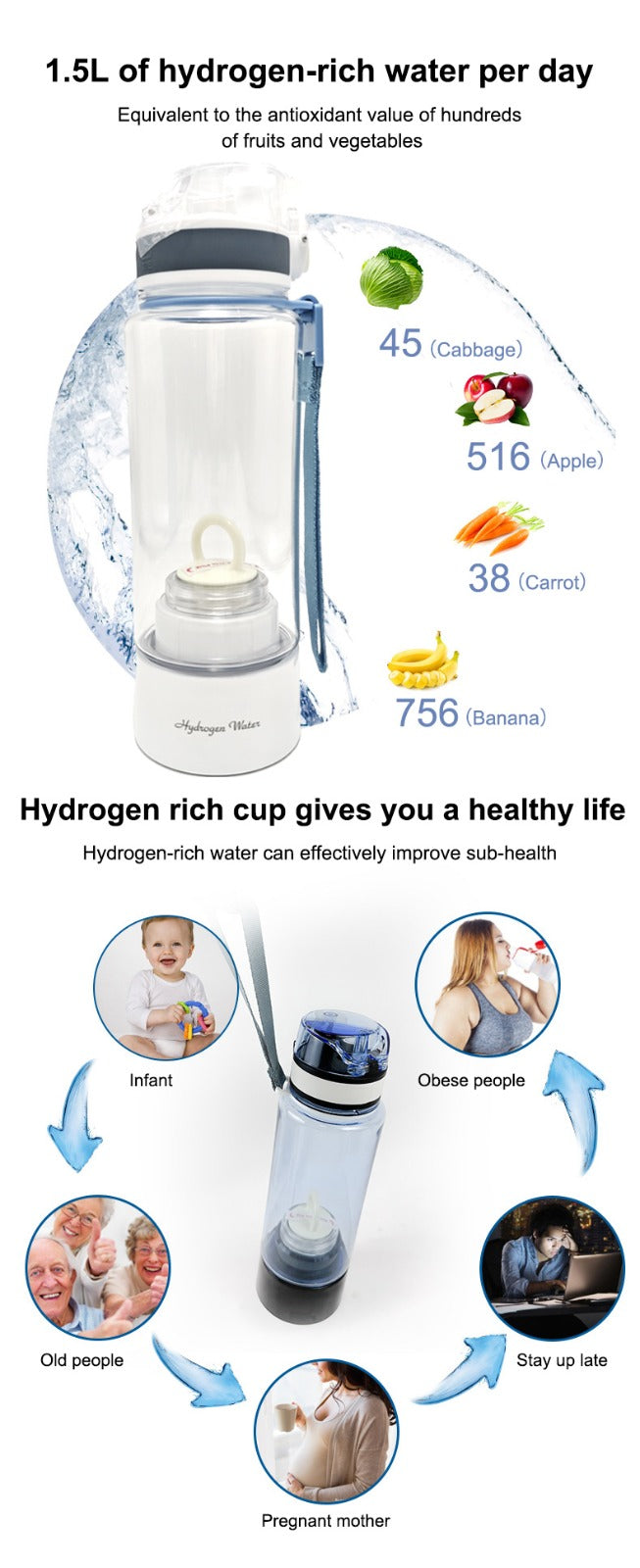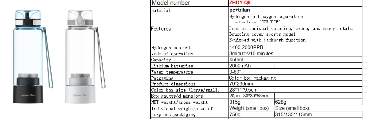 Hydrogen-rich water cup Hydrogen , high-concentration electrolytic, back wash feature.