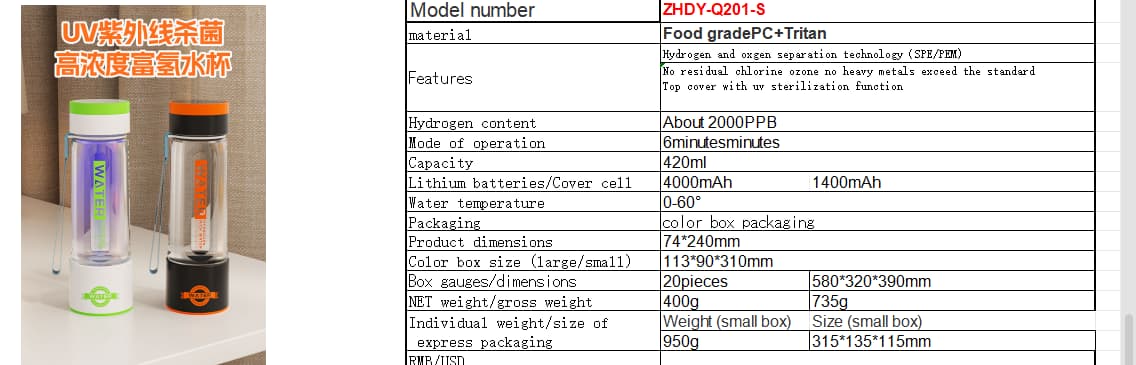 A UV sterilization high concentration hydrogen rich water cup
