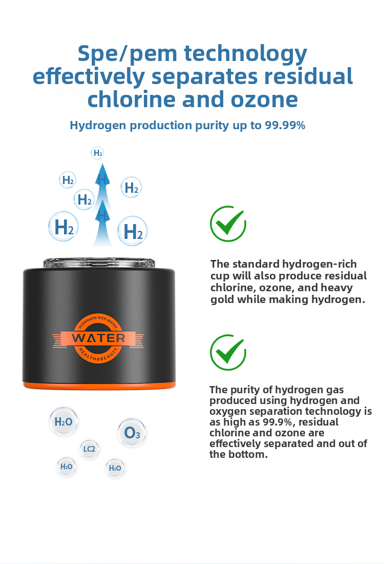 - DUAL SPE/PEM Platinum Coated Ion membrane technology, hydrogen, and oxygen are fully separated. Make 100% pure H2 water at maximum H2 concentration